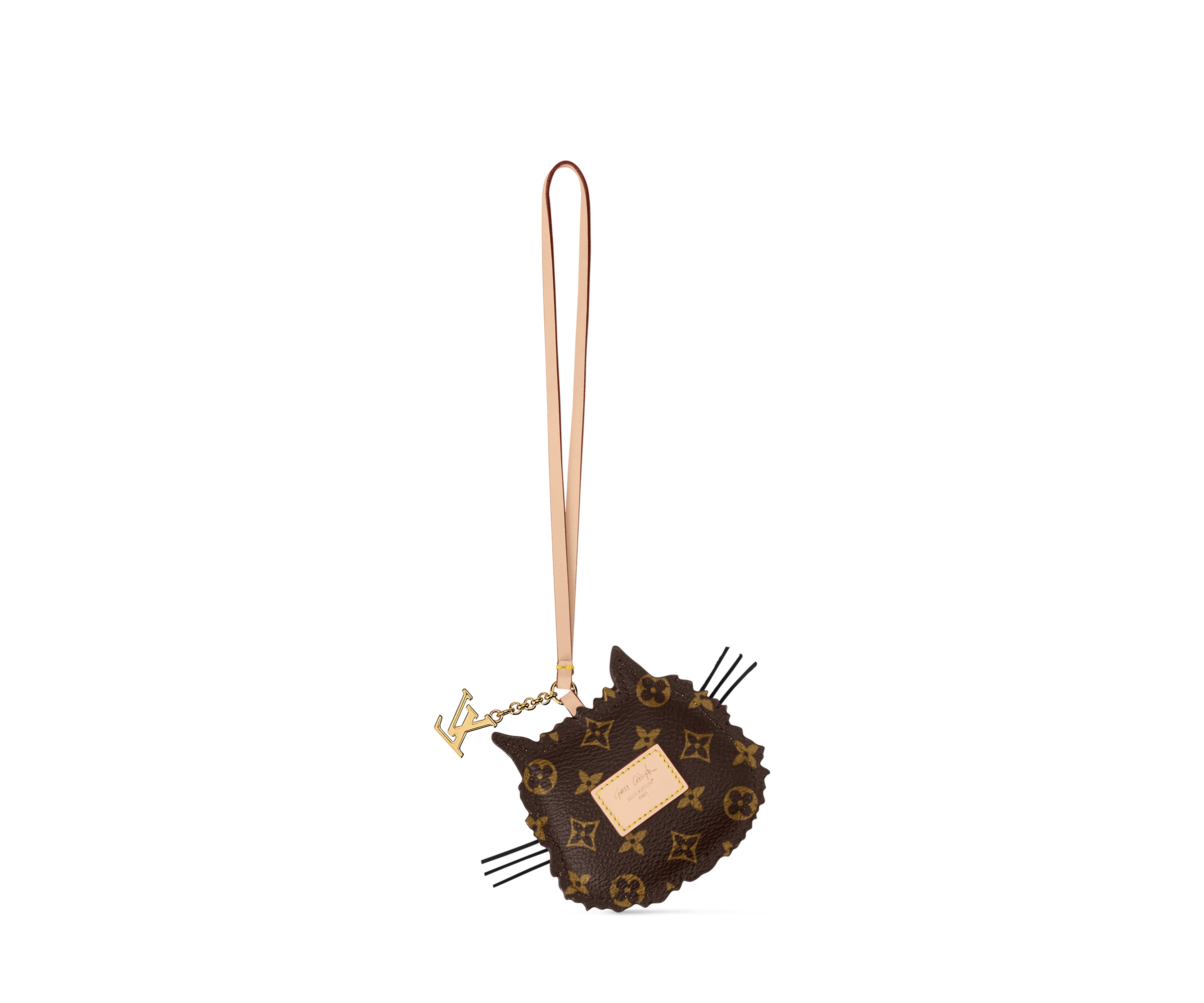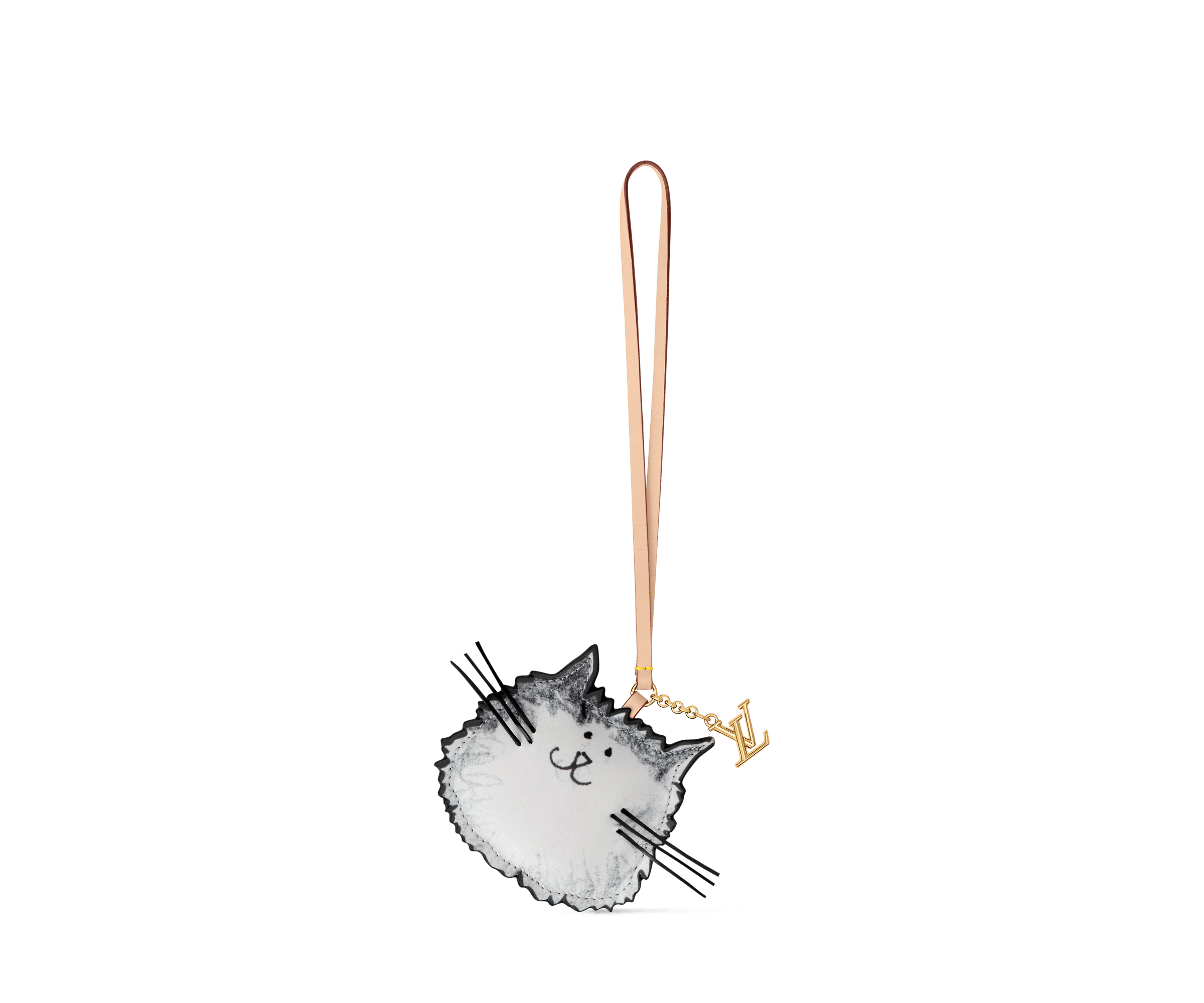 Part of the Louis Vuitton Travels With Grace Coddington collection, the whimsical LV Cat bag charm was created by the former supermodel and stylist as a tribute to her beloved Persian cats. Crafted in leather with a plush puffy effect, it depicts an adorable cat, complete with ultra-fine whiskers. An LV Initials emblem in bright gold-toned metal adds an eye-catching House touch.