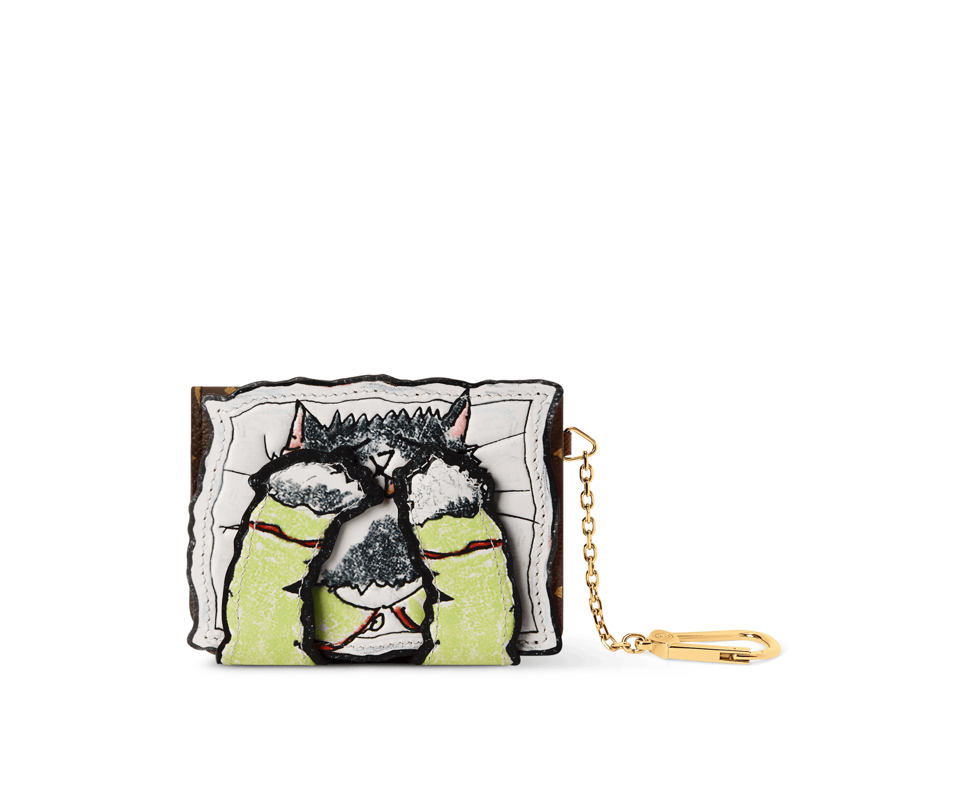 Part of the LV Travels With Grace Coddington collection, the Pawket Purse is crafted from cowhide and canvas, patterned with the House’s signature Monogram. It is defined by a colorful cat illustration, hand-drawn by Coddington herself, and is fitted with four card slots. The functional design is finished with sleek gold-toned hardware, including a hook that can be attached to other accessories.