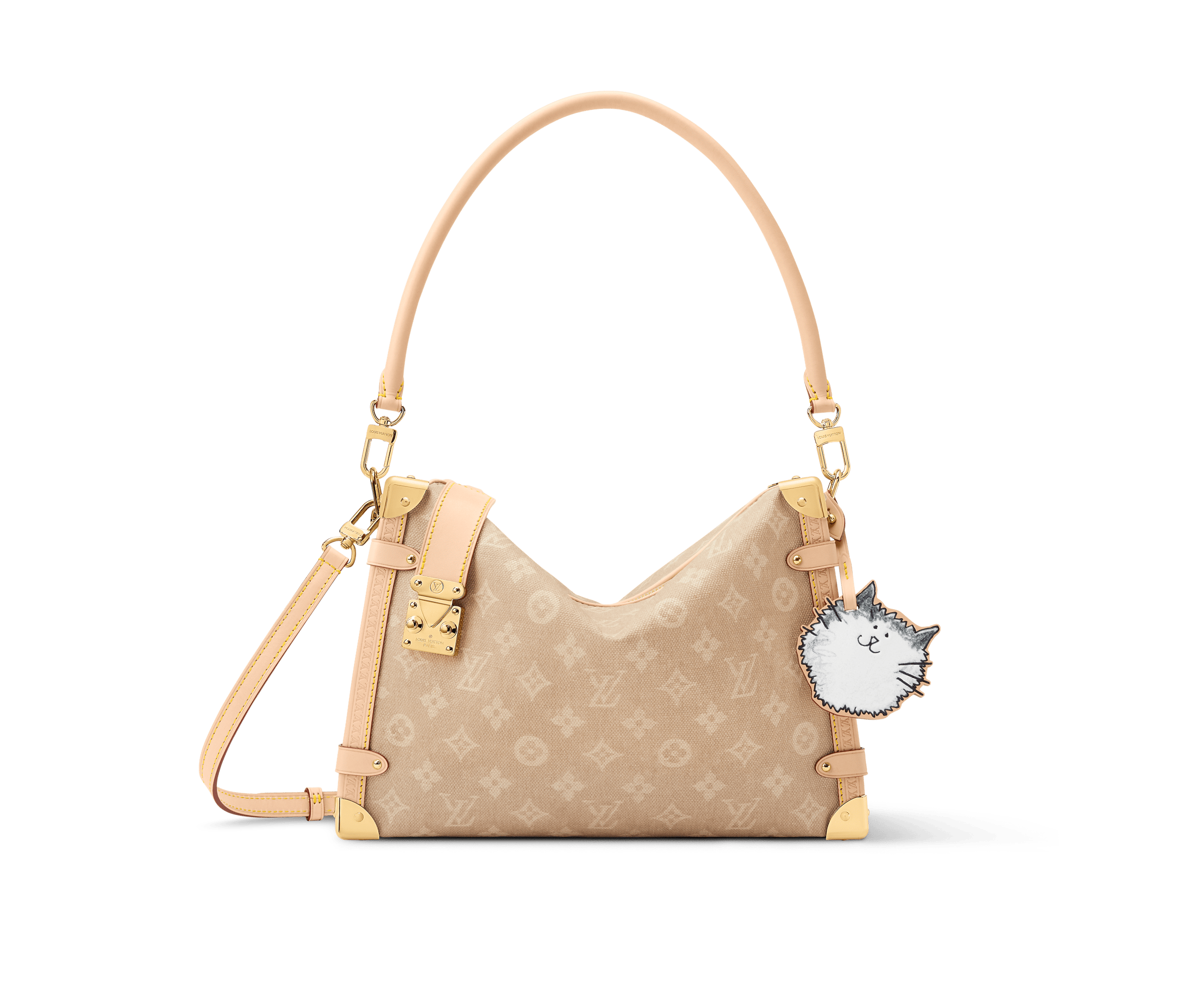This LV Travels With edition of the Side Trunk GM has been designed in collaboration with fashion icon and artist Grace Coddington. Celebrating the former American Vogue Creative Director at Large’s love of pets, it is patterned with an exclusive Meowgram signature and includes a fun cat-shaped charm, which can be removed if desired. The iconic S-lock pays tribute to the House’s heritage.