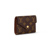 The compact Victorine wallet in Monogram canvas combines femininity and functionality. It opens out to reveal many practical features, including card slots and pockets for bills and coins. Its envelope-style flap is sealed with a press-stud.