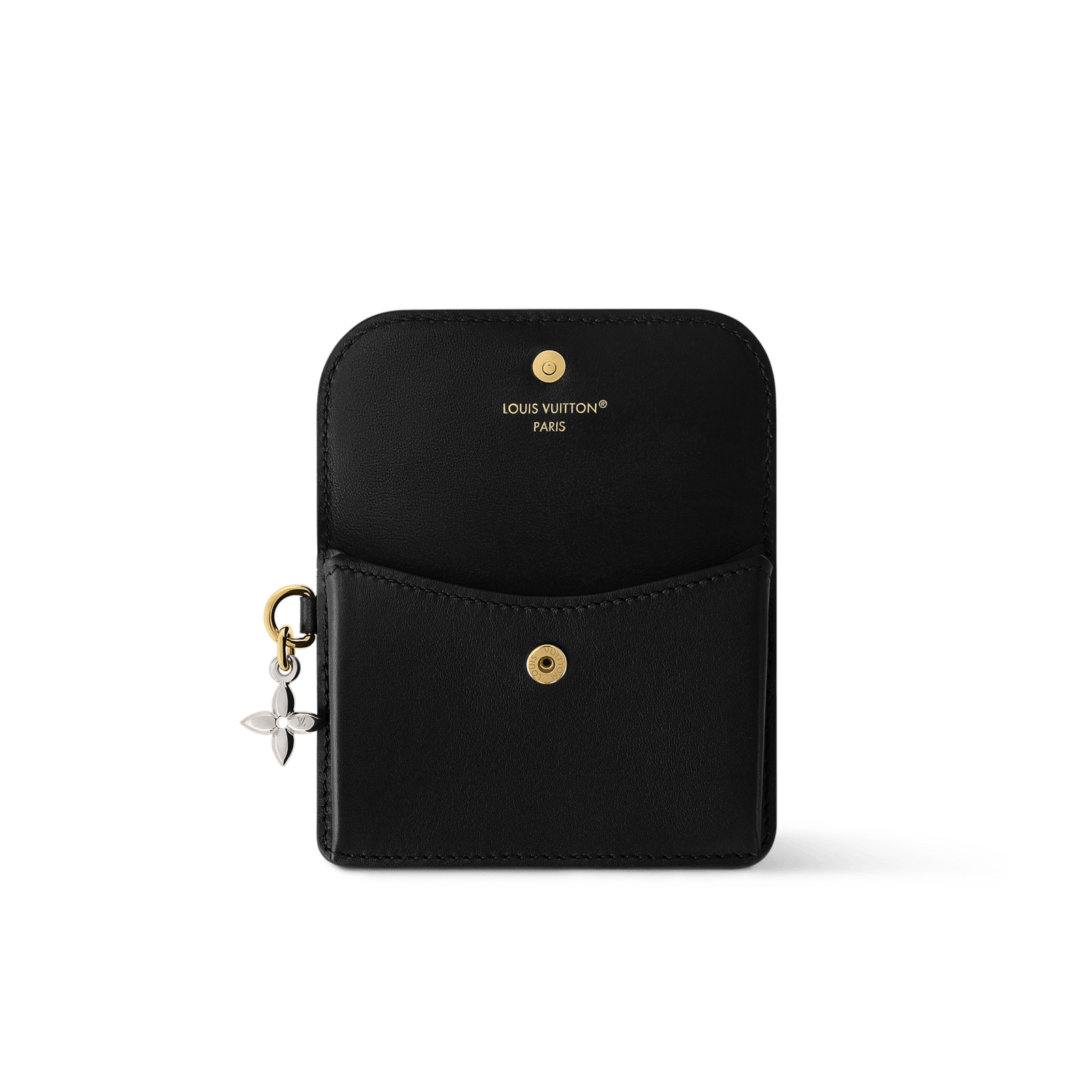Meet the Tiny Recto Verso Card Holder from the LV Bloom collection. Offered in a timeless colorway, this elegant accessory is crafted from calfskin and adorned with a new signature Monogram Flower charm in a bi-galvanized metallic finish. It is designed with a pleated construction to maximize space, and includes a large front pocket, plus two card slots at the back.