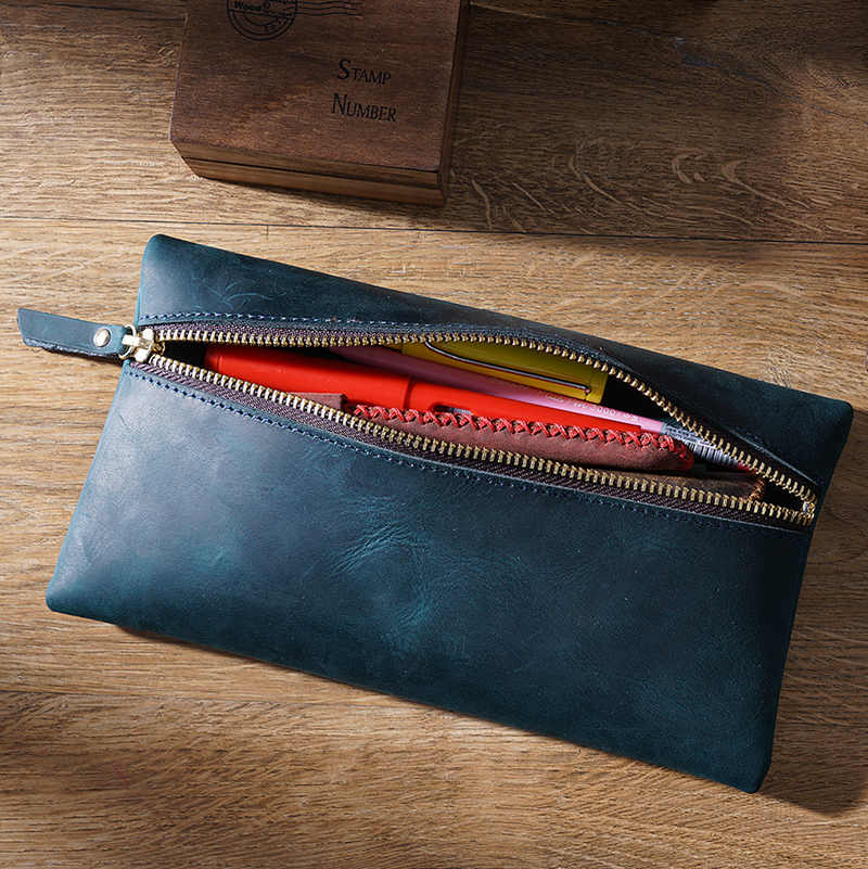 The pencil case of rustic 2 mm distressed leather with pull-up vintage look – has enough space for pens, pencils and eraser and provides neatness in your bag. With strong metal zipper. Professionally designed small zippered leather cases for your hobbies to hold pencils and pens of all sizes!