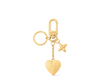 Finely crafted in gold-tone metal, the precious LV Heart bag charm makes a striking signature statement. Hanging from a delicate chain, a gleaming heart inscribed with the LV Initials is paired with a small pointed Monogram Flower. An eye-catching way to add a glamorous flourish to a favorite handbag.