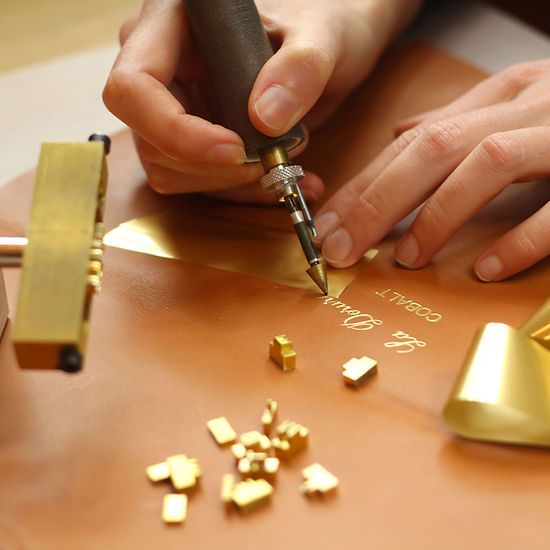 We use a range of expert techniques to ensure exceptional results: hand-painted marquage for leather goods, hot stamping for initials or names, and precision engraving for metal hardware. Every detail is crafted to make your piece one of a kind.