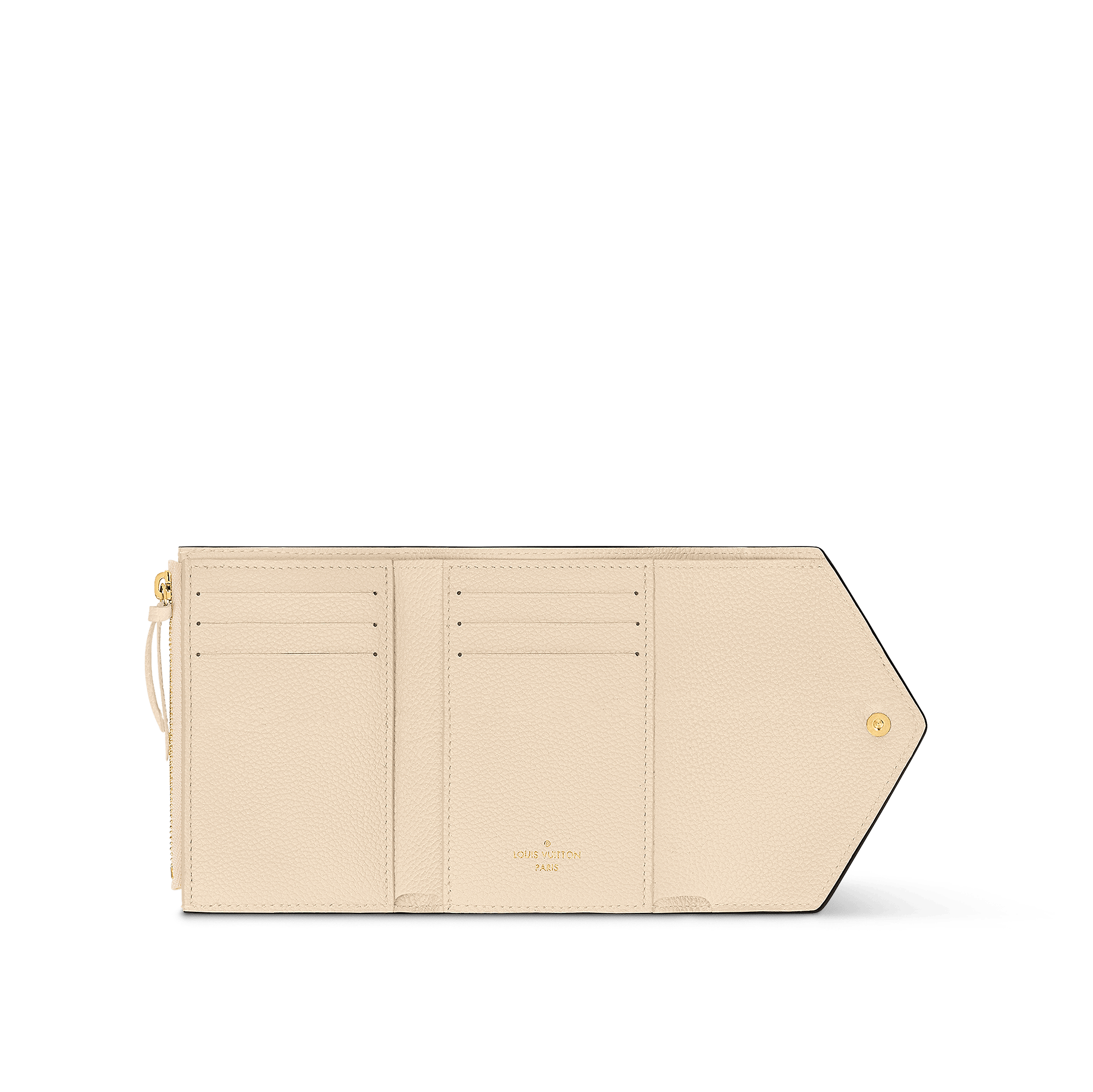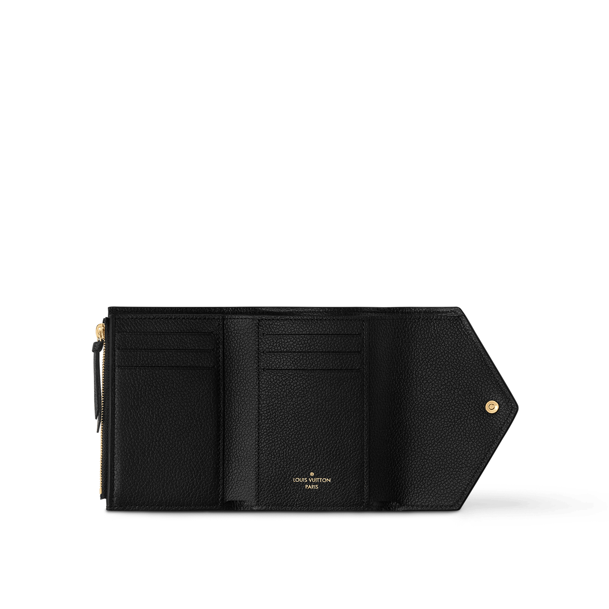 The iconic Victorine Wallet returns for the season in this elegant and versatile colorway. Crafted from signature Monogram Empreinte leather, the compact design is trimmed with grained cowhide and adorned with a delicate press-stud closure. The perfect choice for keeping bills and coins organized, it opens to reveal multiple pockets, as well as six card slots.
